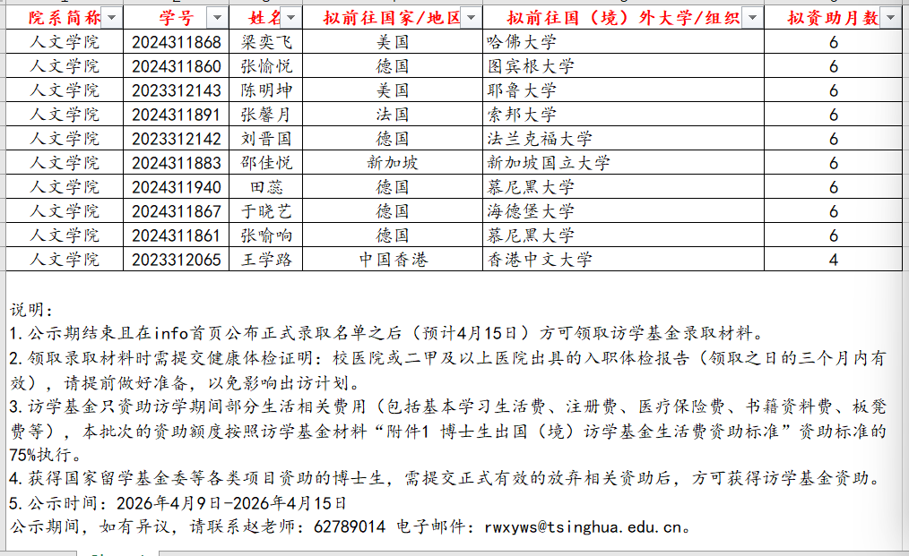 2026年春博士生出国(境)访学基金拟录取公示名单