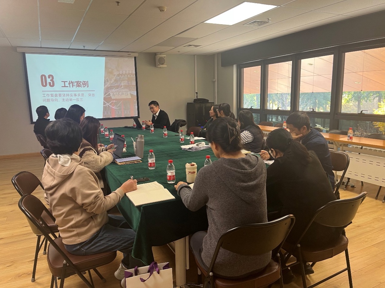 龙腾围绕复盘工作的意义、方法等展开介绍,指出复盘工作的意义在于:分析问题、总结经验、形成“不贰过”的长效机制,推动机关工作不断进步。在工作复盘中,应结合本单位工作实际明确复盘事项、复盘方式、复盘频次、复盘成果等内容,并在实际工作中督促落实。最后,龙腾为我们分享了各学院及党政办的复盘工作经验和做法,并鼓励大家将复盘机制融入日常,抓在经常;结合专项工作、重要活动开展专题复盘,形成要点规范;并动态编制“错题本”“案例集”,共享共学,助力机关进一步提升发展。