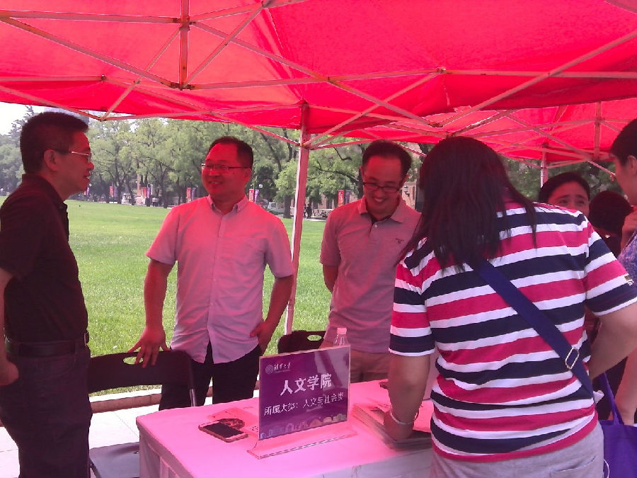 5月20日,在大礼堂草坪北侧,我院历史系副主任方诚峰、中文系李飞跃、哲学系孙晶3位教师参加了由学校本科招办组织的校园开放日活动。活动为面向北京及周边地区广大考生和家长的一次大型招生宣传,也是实施大类招生政策的首次开放日活动。
