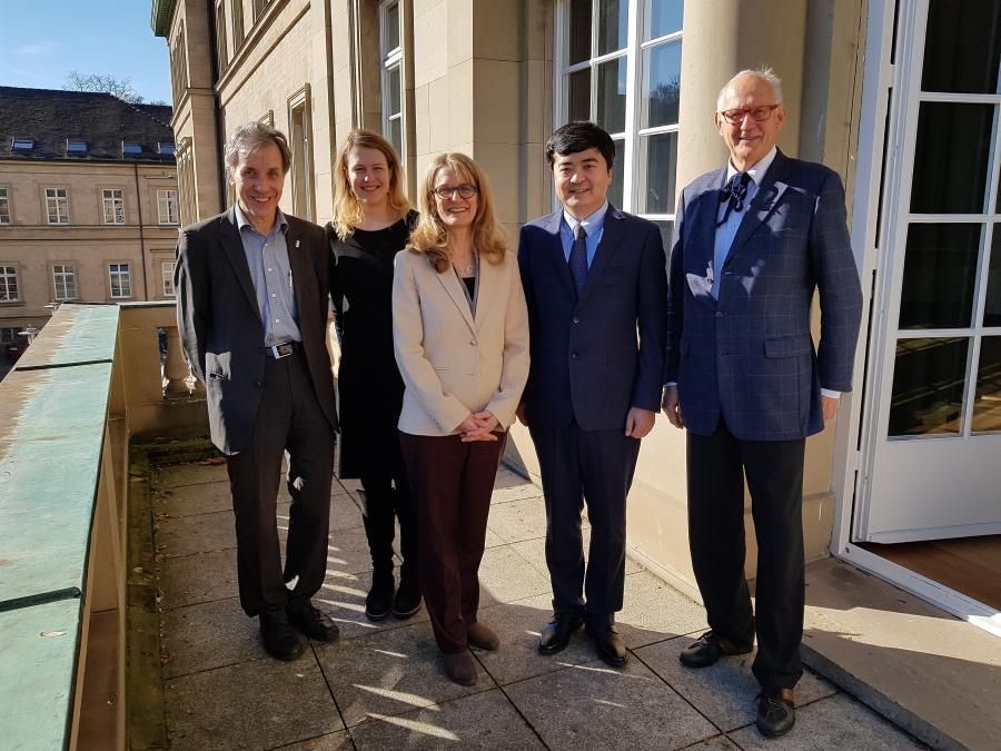 从左至右:Achim Mittag教授,图宾根中国研究院;Christin Wannagat,图宾根校友中心;Monique Scheer教授,图宾根大学副校长(负责国际事务);范大邯博士,图宾根大学大使;Otfried H?ffe教授,图宾根大学荣休教授、清华大学哲学系名誉教授